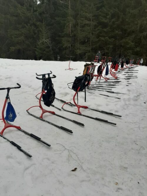 4.- 7. klass käis täna Taevaskojas tõukekelkudega sõitmas.